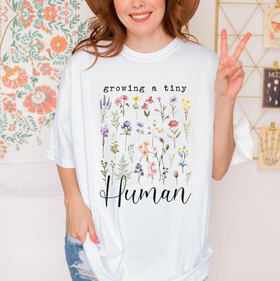 Personalize Baby Announcement Shirt, May Pregnant Shirt, Pregnancy Reveal Shirt, April Maternity Tee, Flower Gender Reveal Shirt, Spring Baby Shower Sweatshirt, Wildflowers Outfit, Growing Tiny Human Shirt, Shirt For Wonmen, Gift For Him, Gift For Her