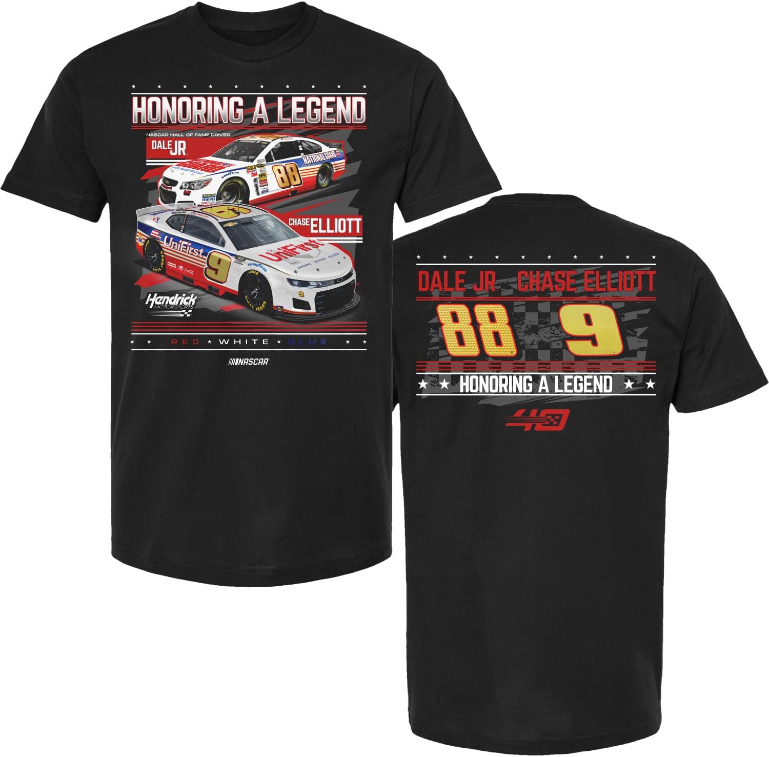 CHECKERED FLAG SPORTS Chase Elliott _9 Dale Earnhardt Jr_ _88 2NASCAR 2024 Darlington Honoring a Legend T-Shirt _US_ Alpha_ Large_ Regular_ Regular_ Black