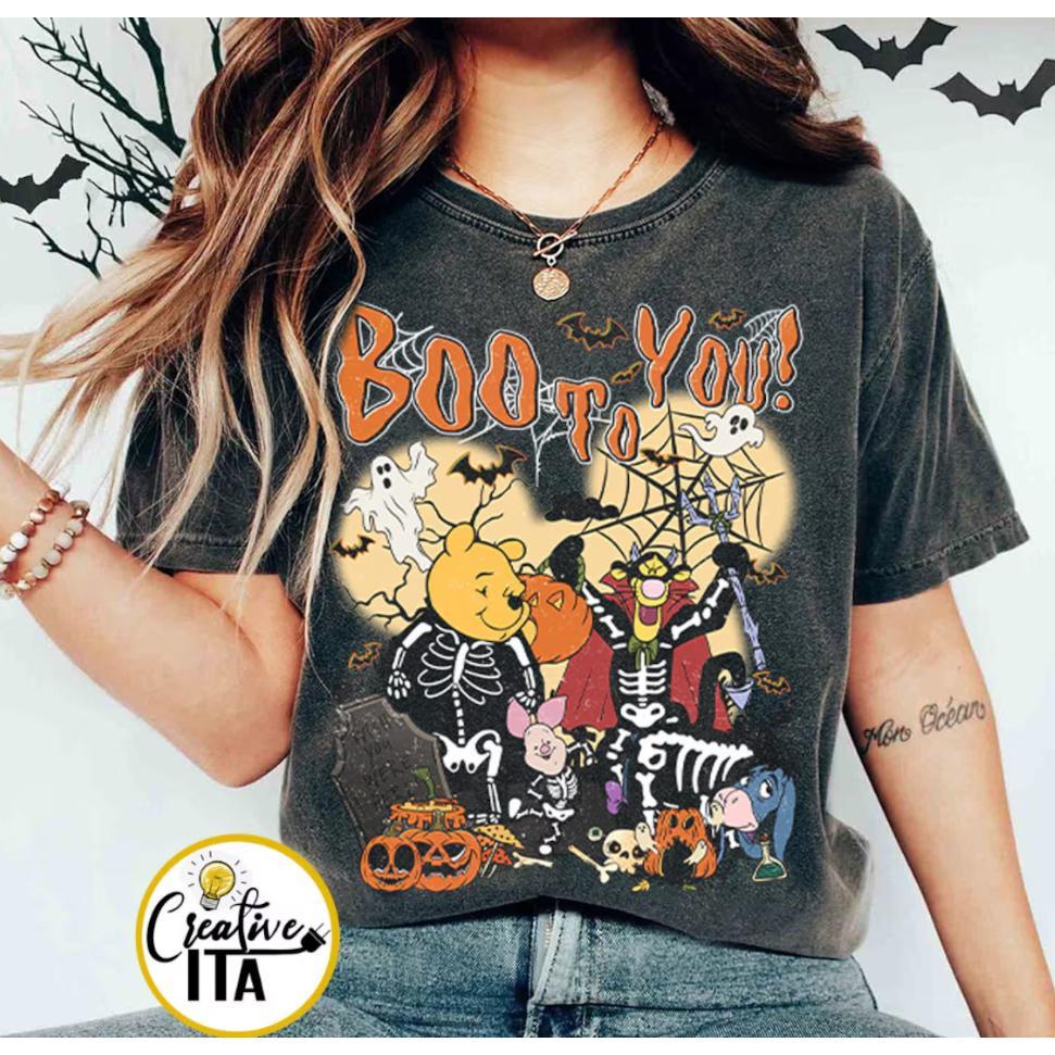 Vintage Winnie Pooh Halloween T-shirt, Boo To You Shirt, Pooh & Friends Skeleton Shirt, Spooky Season Shirt, Cute Fall Shirt, Halloween Tees