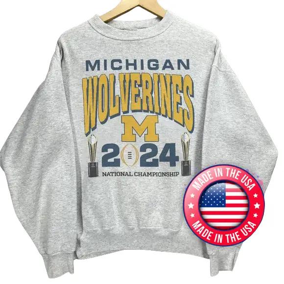 Vintage University Of Michigan Wolverines National Championship Football Sweatshirt, Retro College Michigan Wolverines Big Words Logo Sweatshirt, Graphic Unisex Sweatshirt Gift Casual Round Neck Classic Cotton Fabric Man