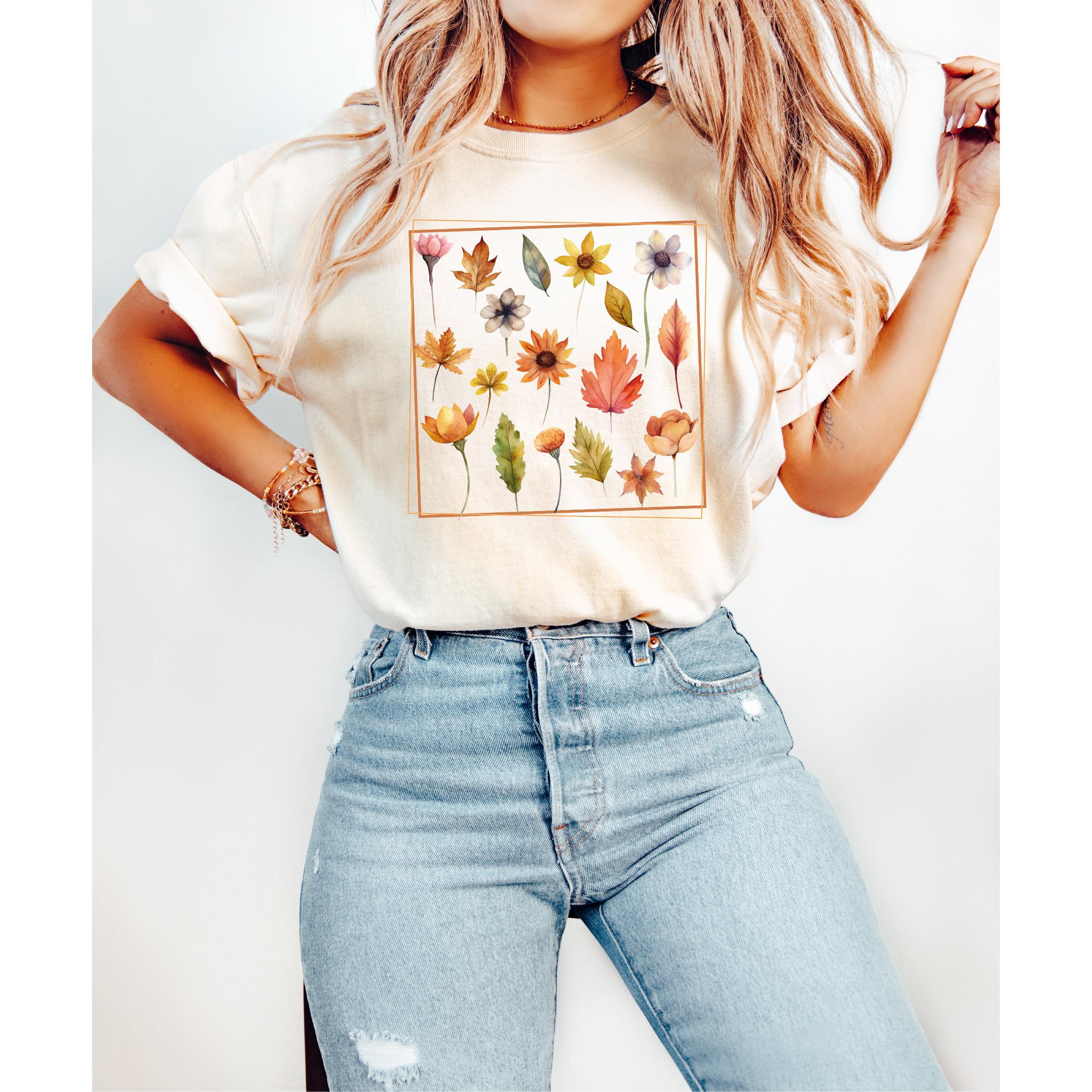 Floral Fall Shirt, Floral Pumpkin Shirt, Womens Halloween Shirt, Fall Shirt for Woman, Autumn Shirt, Cottagecore Fall Shirt-1