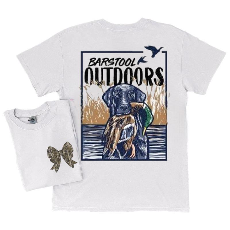 Barstool Outdoors bow shirt, Coquette Camo Bow T-Shirt, Bottomland Camo Shirt, Outdoor shirt, Women's Hunting Tee, Wife Hunting Shirt, Dove Hunting, Duck Hunting Shirt For Men, For Women, T-shirt Cotton Menswear