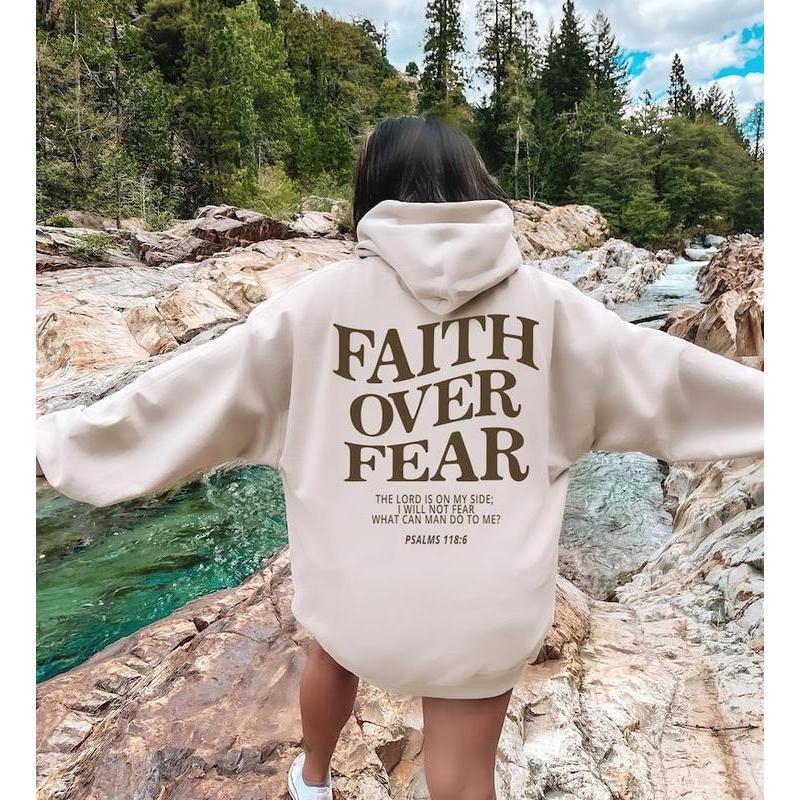 Faith Over Fear Christian Hoodie Christian Sweatshirt Jesus Hoodie Trendy Hoodie Bible Verse Shirt Aesthetic Clothes Aesthetic Hoodie and Sweater; T-shirt Cotton Menswear Polyester Tops