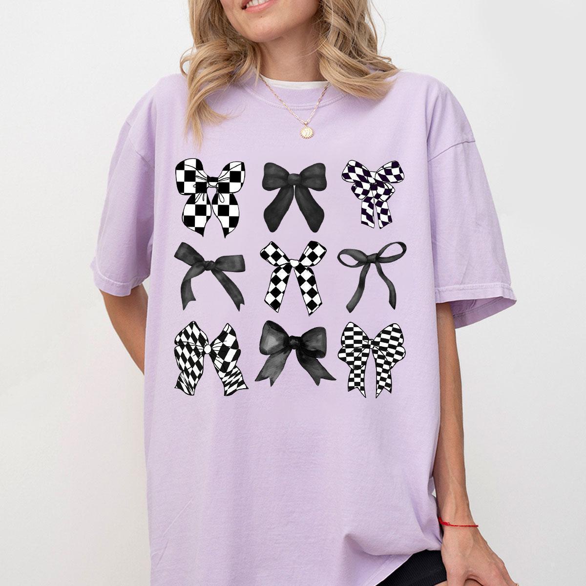Coquette Checkered Black Bow Shirt, Black Bows Coquette Shirt, Gift for Her, Gift for Mom, T-Shirt for Women, Coquette Bows Checkered T-Shirt, Black Bows Tee, Vintage Coquette Aesthetic, Cute Ribbon TShirt, Checkered Coquette Tee Gifts, Sweat