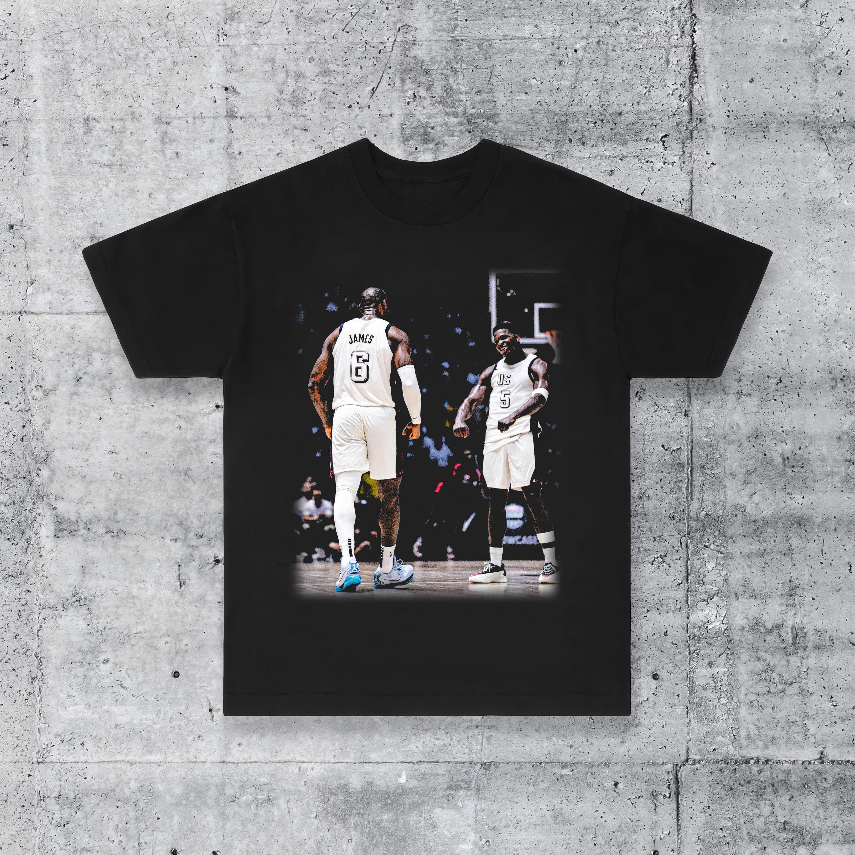LeBron James & Anthony Edwards USA NBA Basketball Paris Streetwear Heavyweight T-Shirt