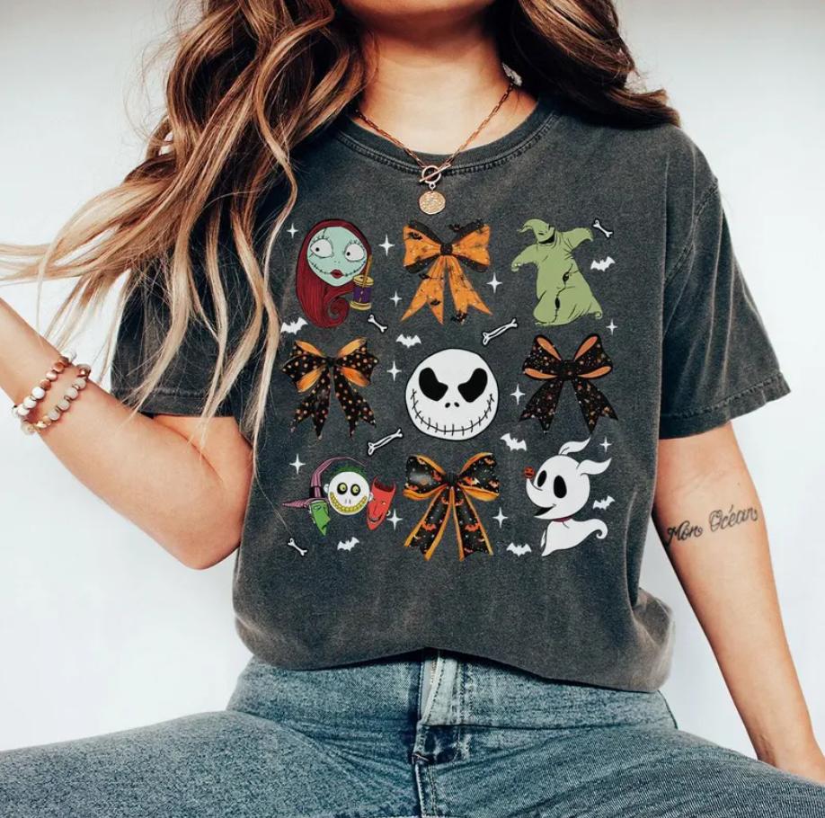 Coquette Bows Nightmare before Christmas Halloween Shirt, Jack & Sally Oogie Boogie Lock Shock Barrel T-Shirt, Spookey Season, Halloween Gift