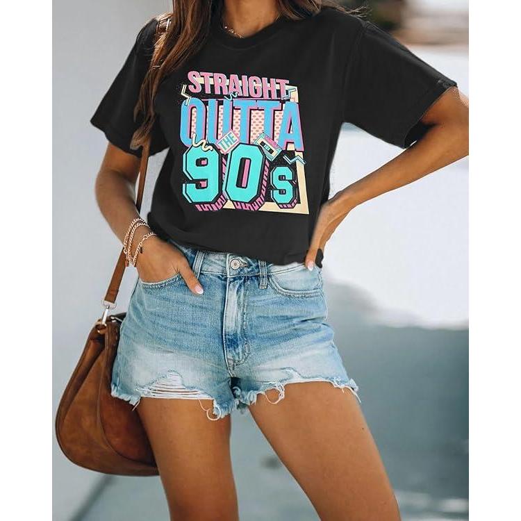 Retro 90s Tshirt for Women Straight Outta The 90s Shirt Vintage 90&39;s Neon Party Tee Crew Neck Short Sleeve Tops