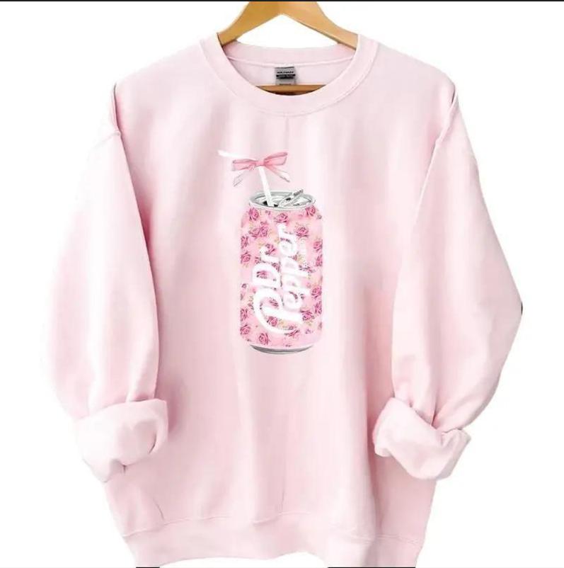 Dr Pepper Sweatshirt, Dr Pepper Gift Sweatshirt, Dr Pepper Bow Crewneck Sweatshirt, Dr Pepper Pink Bow Shirt Sweatshirt, Trendy Soda Can With Roses Sweatshirt m904