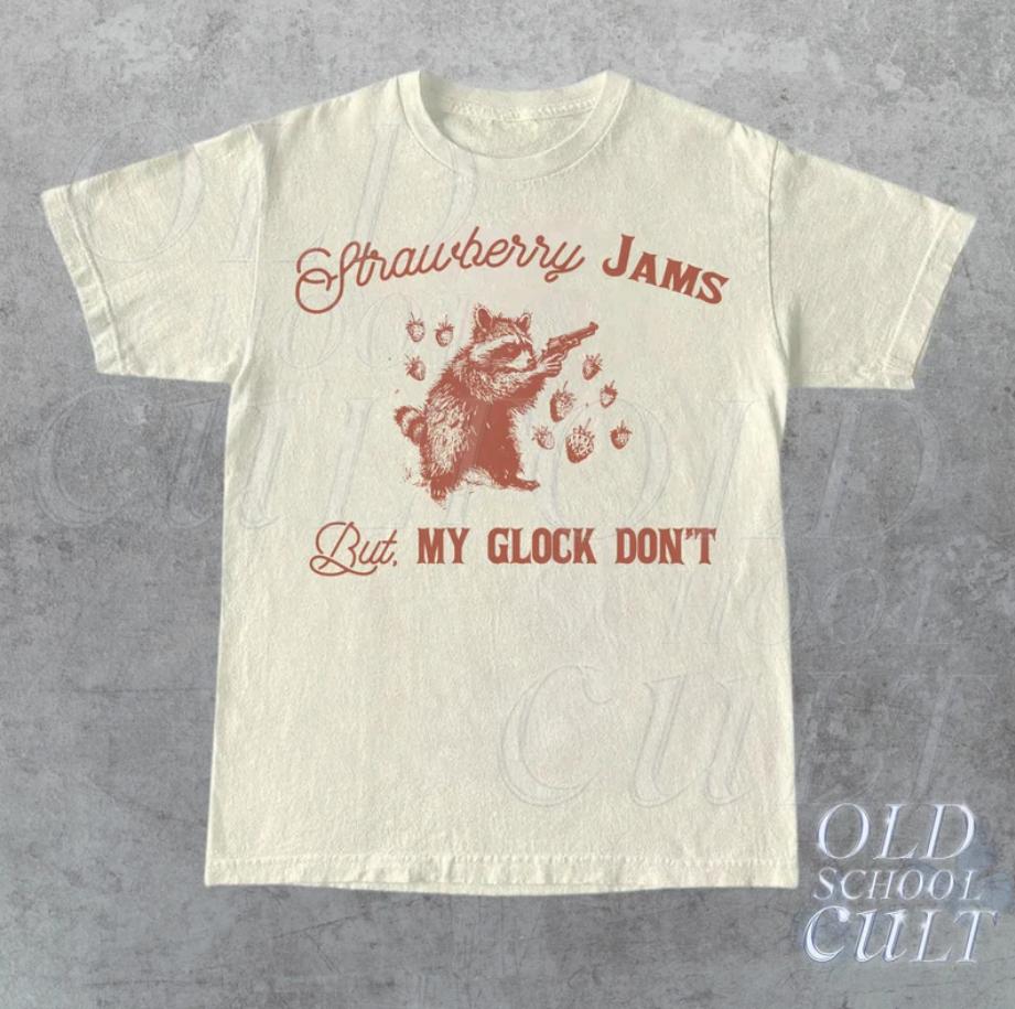 Strawberry Jams but My Glock Do Not Vintage T-Shirt, Retro 90s Raccoon Shirt, Oversized Trash Panda Tee, Funny Unisex Adult Cowboy T-Shirt