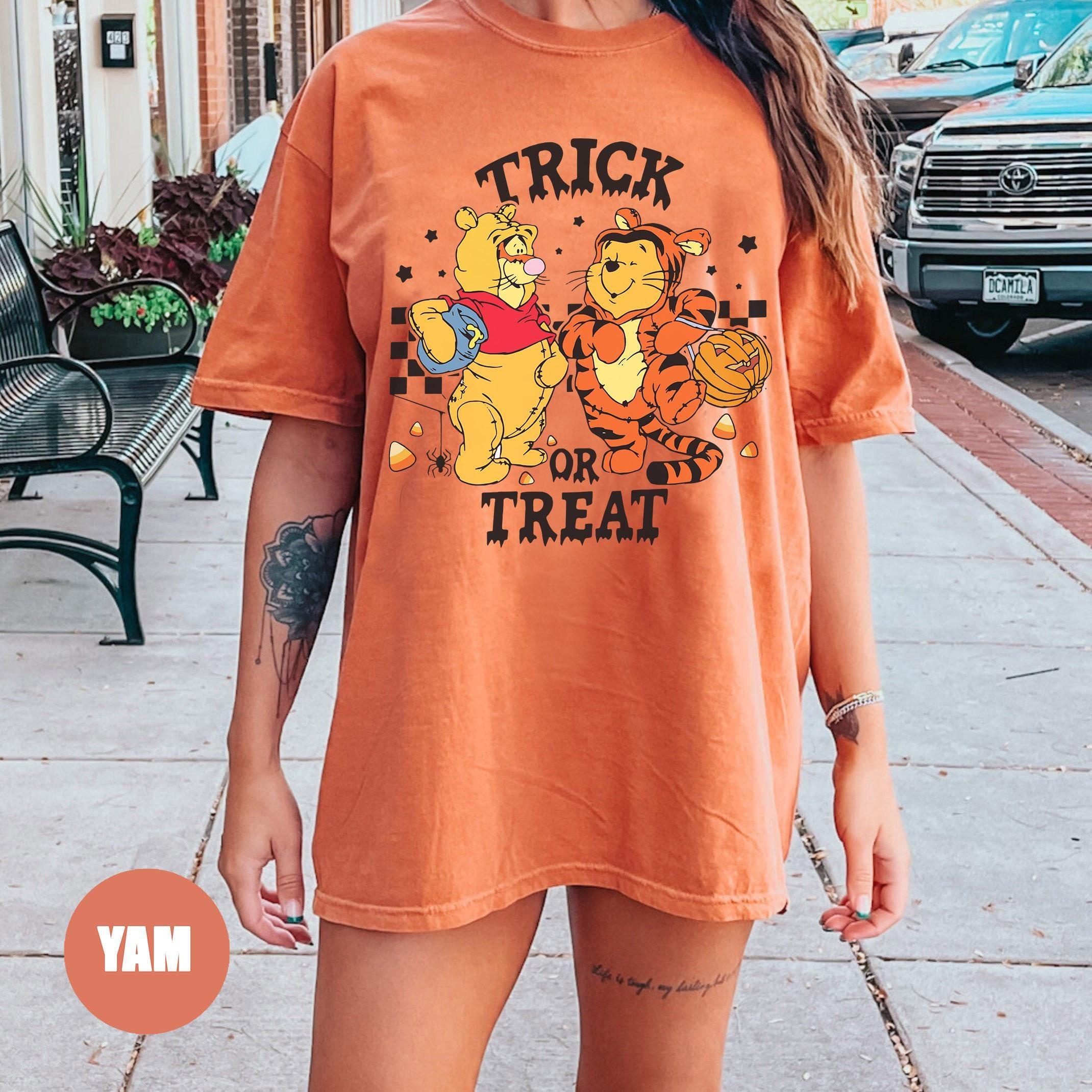 Retro Trick or Treat Pooh and Tigger Shirt, Winnie The Pooh Halloween Shirt, Mickey Not So Scary Halloween Party, Disnnneyland Halloween Tee