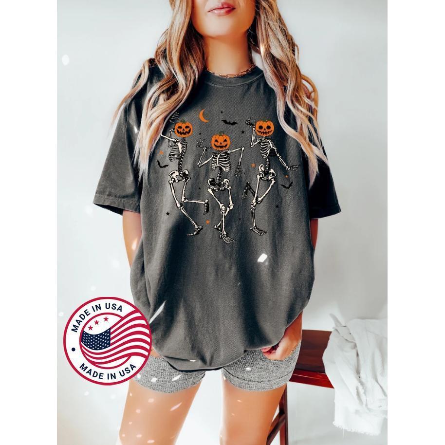 Dancing Skeleton Pumpkin Shirt, Retro Halloween Shirt, Womens Halloween Shirt, Cute Fall Shirt, Spooky Season, Pumpkin Face