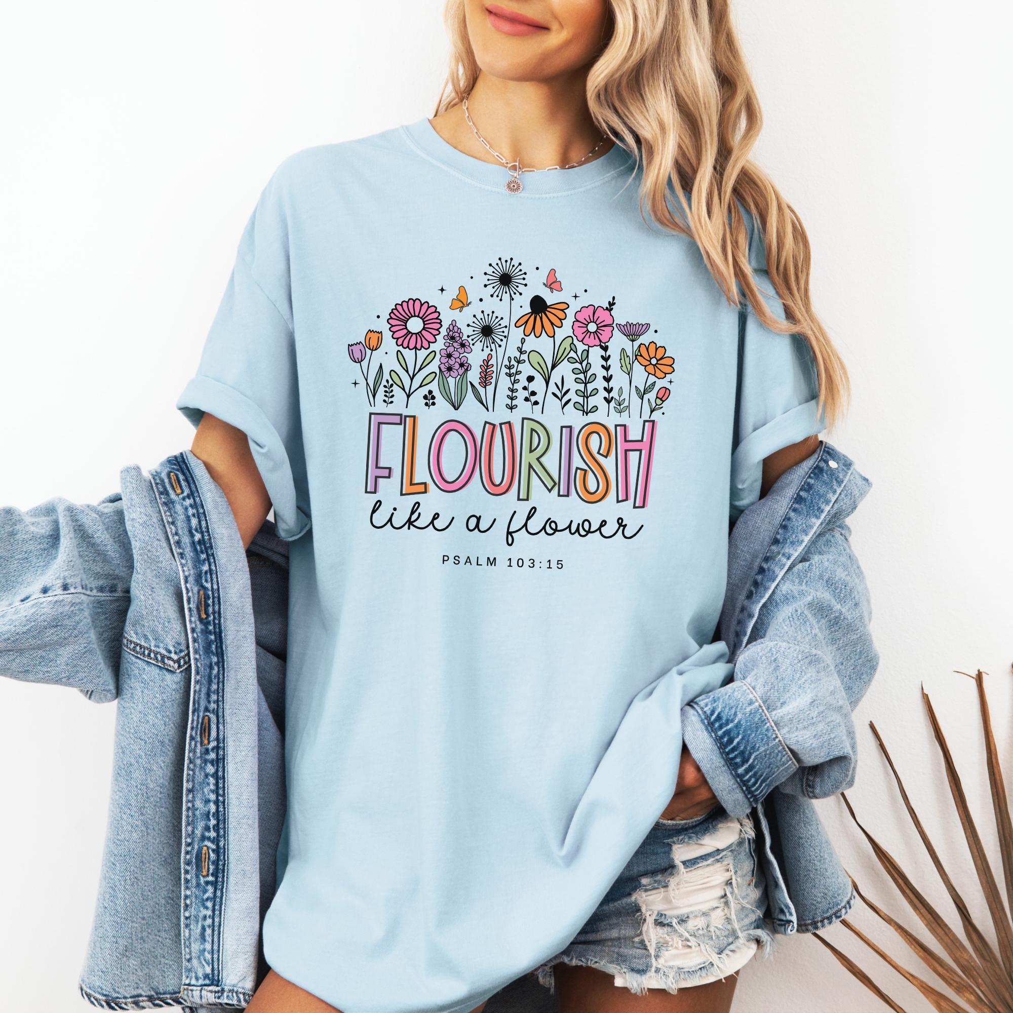 Flourish Like a Flower s Shirt, Christian Shirt, Jesus Apparel, Floral Jesus Oversized Tshirt, Graphic Tshirt for Women, Psalm, Sweatshirt, Hoodie