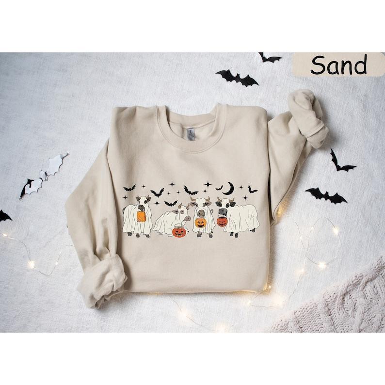 Ghost Cows Sweatshirt, Halloween Cows Crewneck, Ghost Shirt, Cow Lover Gift, Fall Shirt, Halloween Sweater, Funny Halloween, Sweatshirt, Hoodie