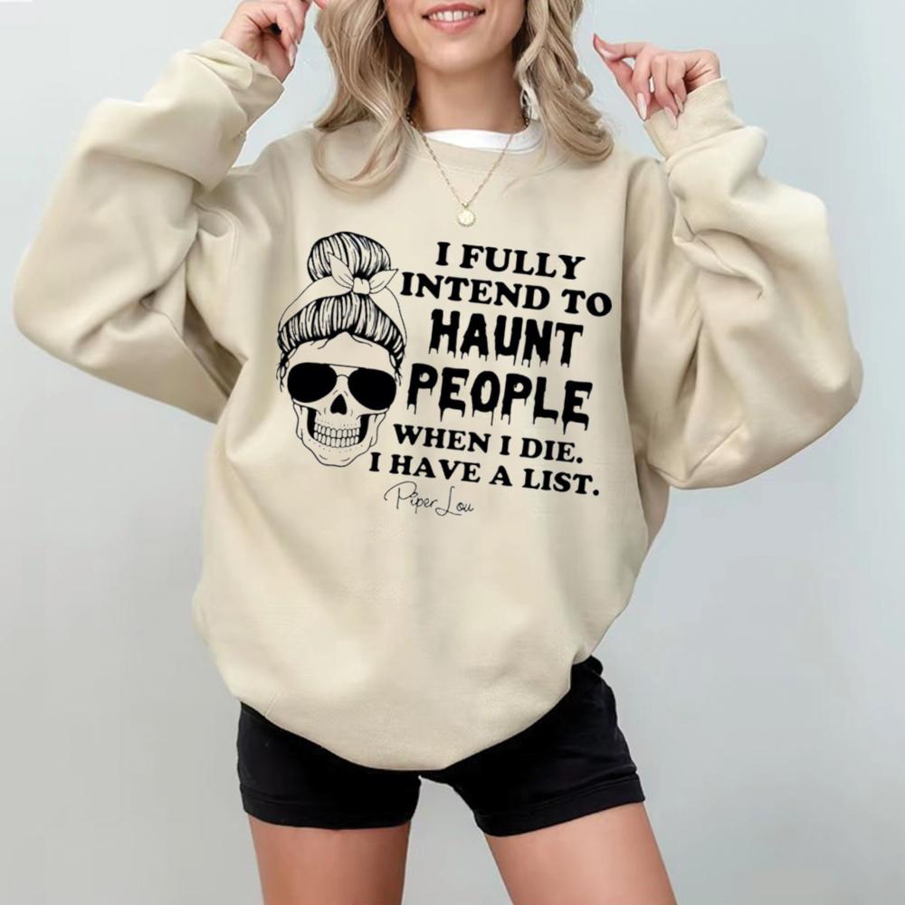 I Fully Intend To Haunt People When I Die Halloween Sweatshirt, Halloween Coffee Sweater, Long Sleeves Shirt, Season Halloween, Horrow Shirt, Fall Shirts, Women Halloween Tops