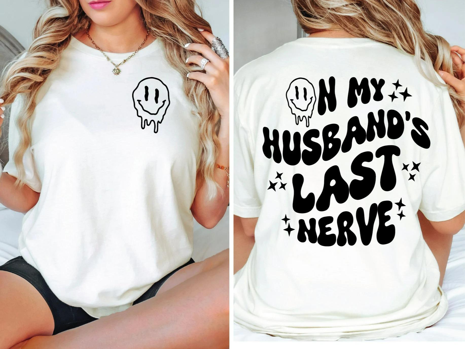 On My Husband's Last Nerve T-Shirt, Graphic Quote Summer Tee, Gift For Men, Women