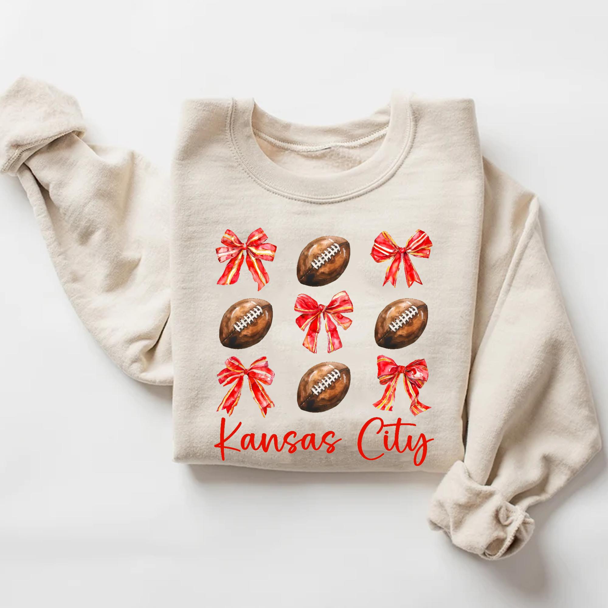 Kansas City Coquette Bow Sweatshirt, Kansas City Football Crewneck, Football Bow, Game Day Football Sweatshirt