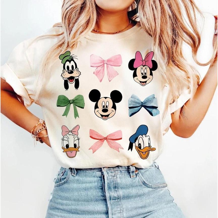 Mickeyy Friends Tee, Minnie Bow Coquette Shirt, Womens Tshirt, Bow Pluto Daisy Donald Shirt, Cute Shirt LS9JJ