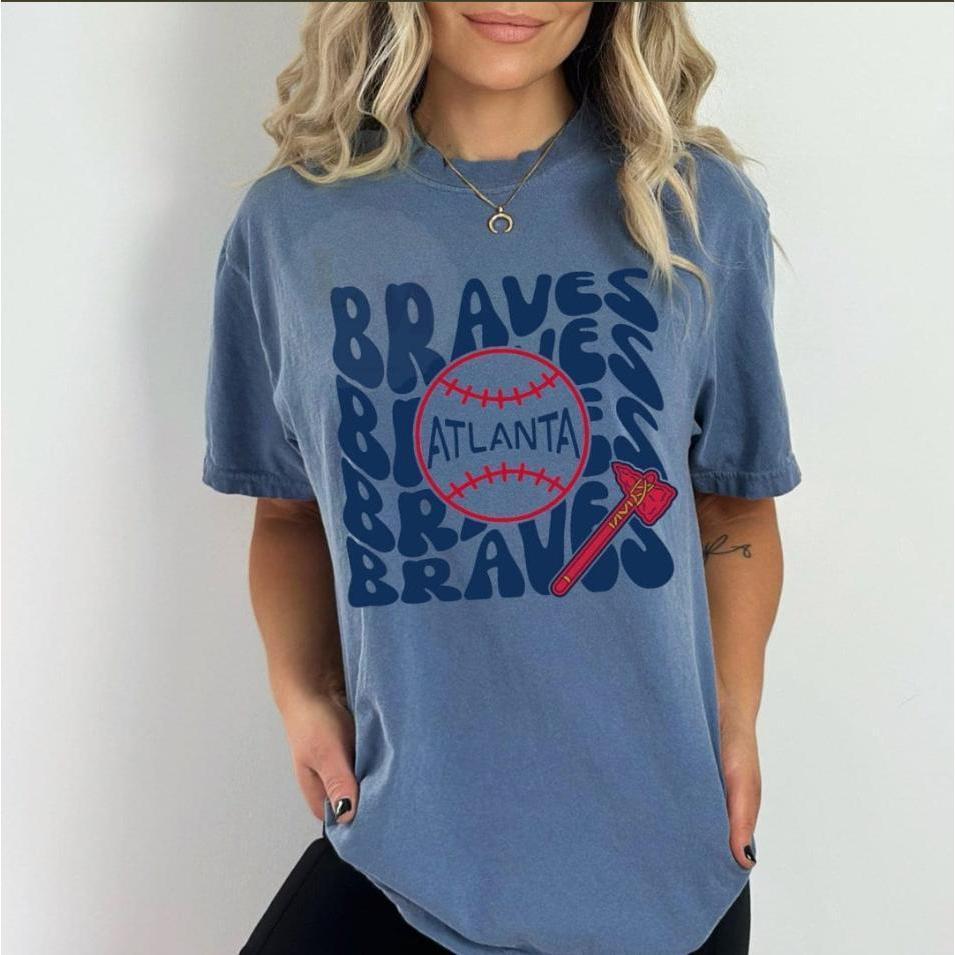 Braves Retro Wavy Graphic Tee Design, Braves Baseball, Atlanta Georgia Baseball, Atlanta Graphic Tee, Truist Park, Georgia Baseball Tee 5876