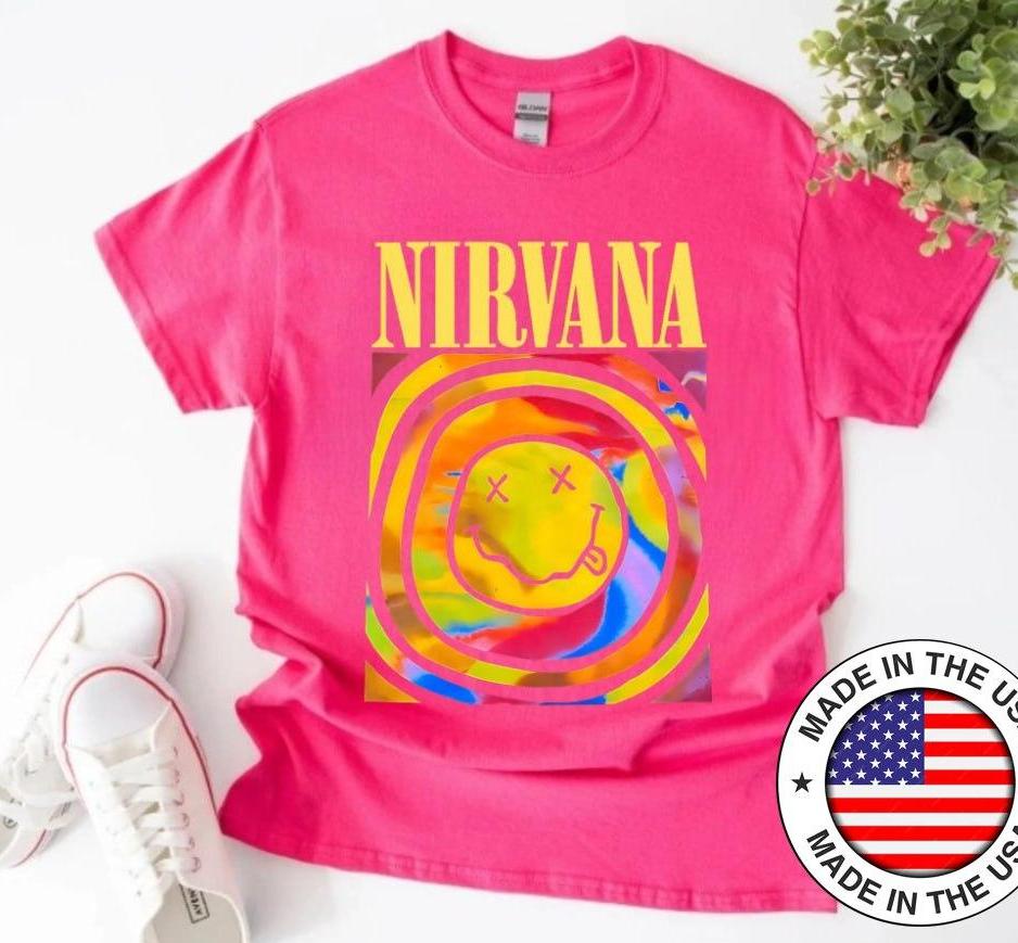 Nirvana Tshirt, Nirvana Smile Face Crewneck Tshirt, Nirvana Pink Tshirt, Trendy Pink Tshirt, Gift for Girls, Preppy Clothes, Happy Face Shirt