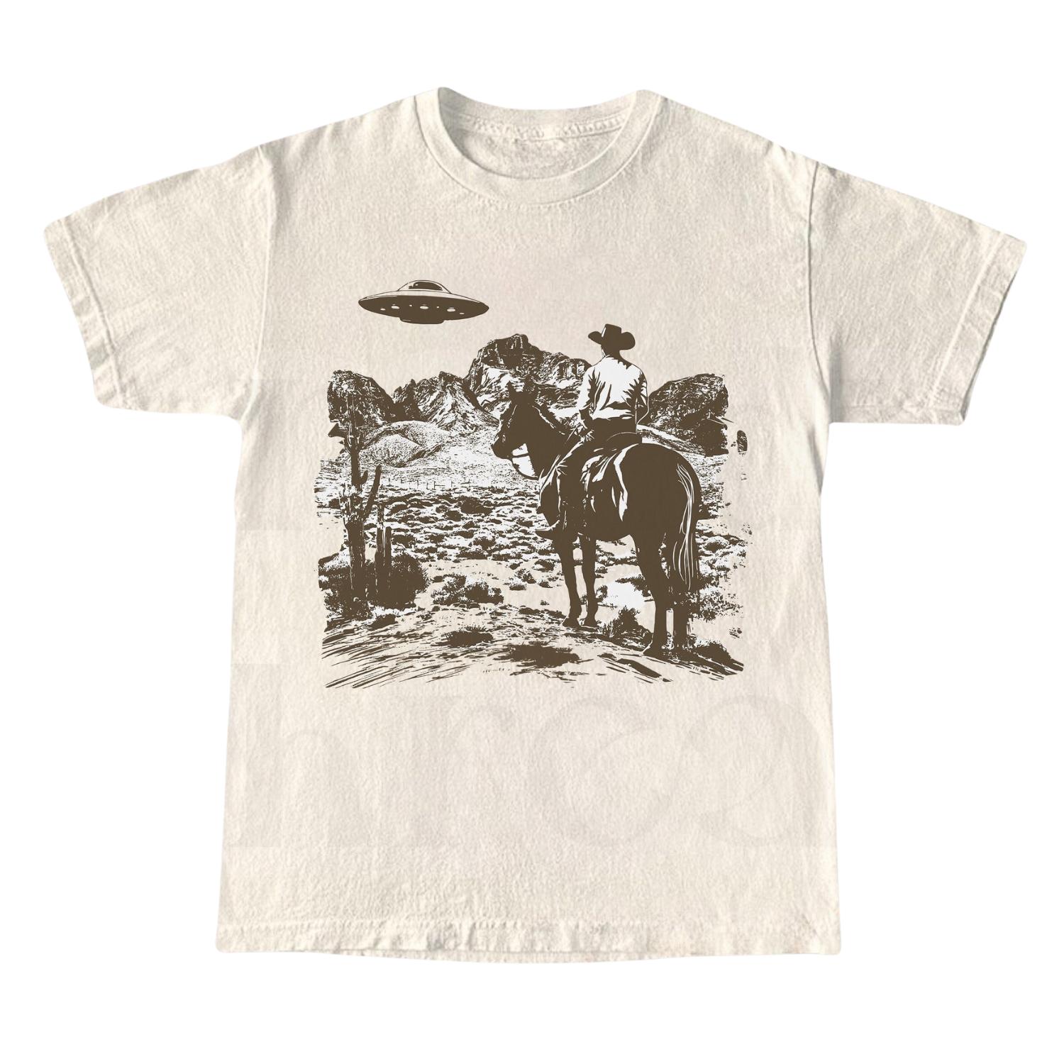 Ufo Western Shirt, Retro T-Shirt, Vintage Cowboy T-Shirt, Rodeo T Shirt, Wild West Shirt, Western Oversized Tee, Unisex Tee Top Womenswear