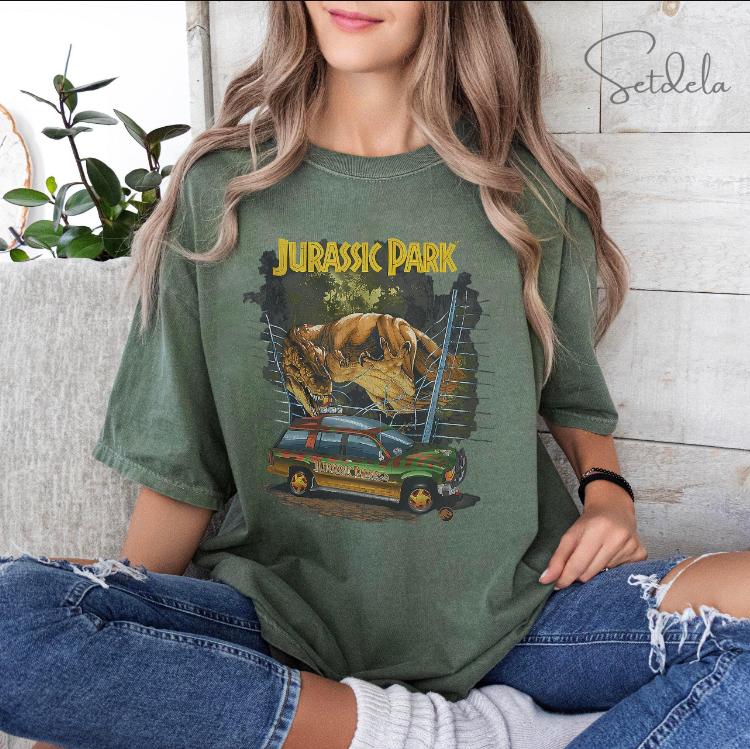 Personalized Vintage Jurassic Park Shirt, Magic Kingdom Shirt, Dinosaur T-Rex Merch Shirt, Vacation 2024 Shirt, Gift for Her, Family Vacation 2024 Shirt, Birthday Shirt, Trip Gift, Jurassic World Shirt, Jurassic Park Entrance with Tour Jeep Shirt 9613