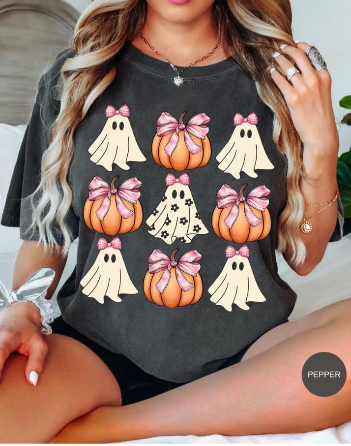 Boo Ghostly Coquette Bow Shirt, Halloween Ghost T-Shirt, Spooky Season Shirt